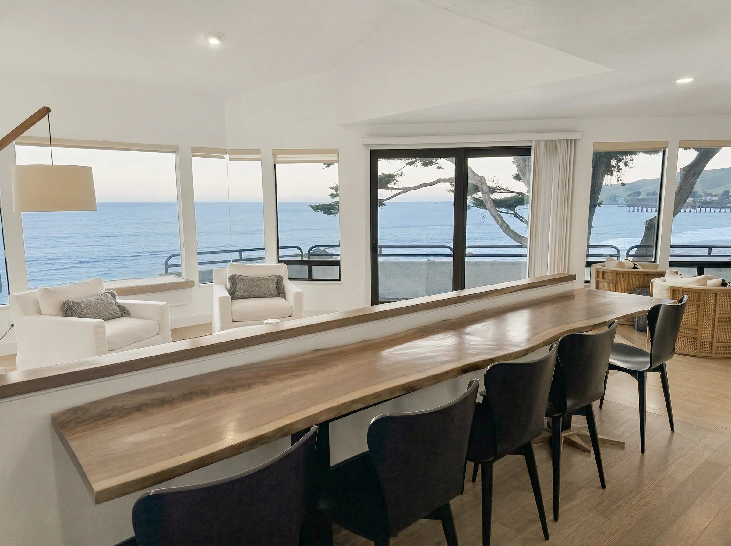 MONTHLY RENTAL (30+ DAYS) - Discover an extraordinary oceanfront retreat, where the rugged Central California coast meets a unique home that blends elevated design with classic coastal charm, and space for everyone! You'll feel like it's your own private ship at sea with so many great amenities and areas to explore. Enjoy unobstructed sunset views along the beach and soak in the coastal vibe, all within a short stroll to downtown shops, galleries, restaurants, the pier, and the Cayucos Landing Vets Hall.