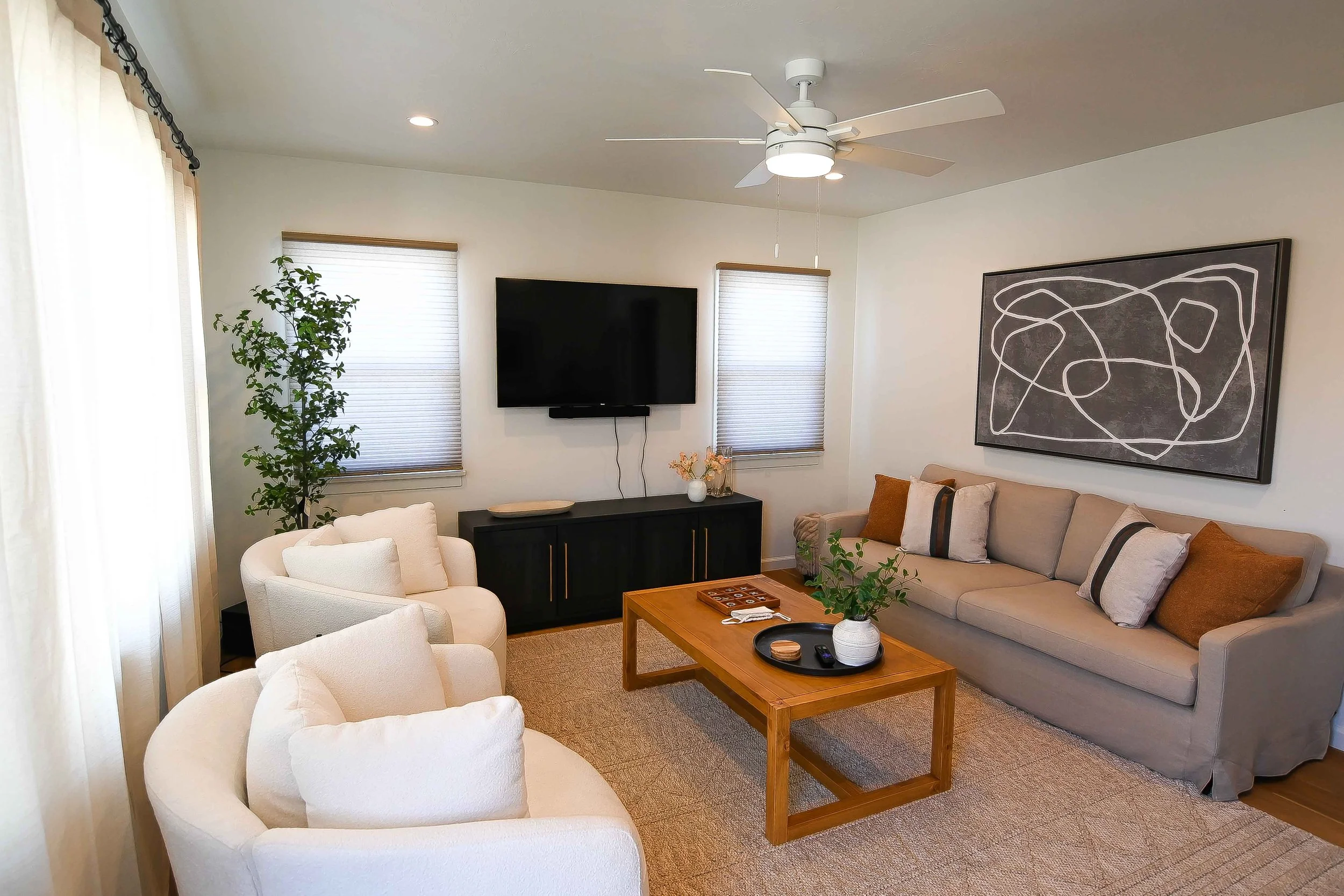 This classic, casual Cayucos beach bungalow has been thoroughly renovated and expertly finished with modern decor, all less than a block to beach access stairs. Spend a month or a whole season with room for you and your guests. This two-story home features separate living areas, plenty of off-street parking, a fenced back patio, and updated retro-vibe kitchen and dining room with three King/Queen bedrooms and a bonus room with two double-sized bunk beds, Wi-Fi, smart TVs, and plenty of storage.