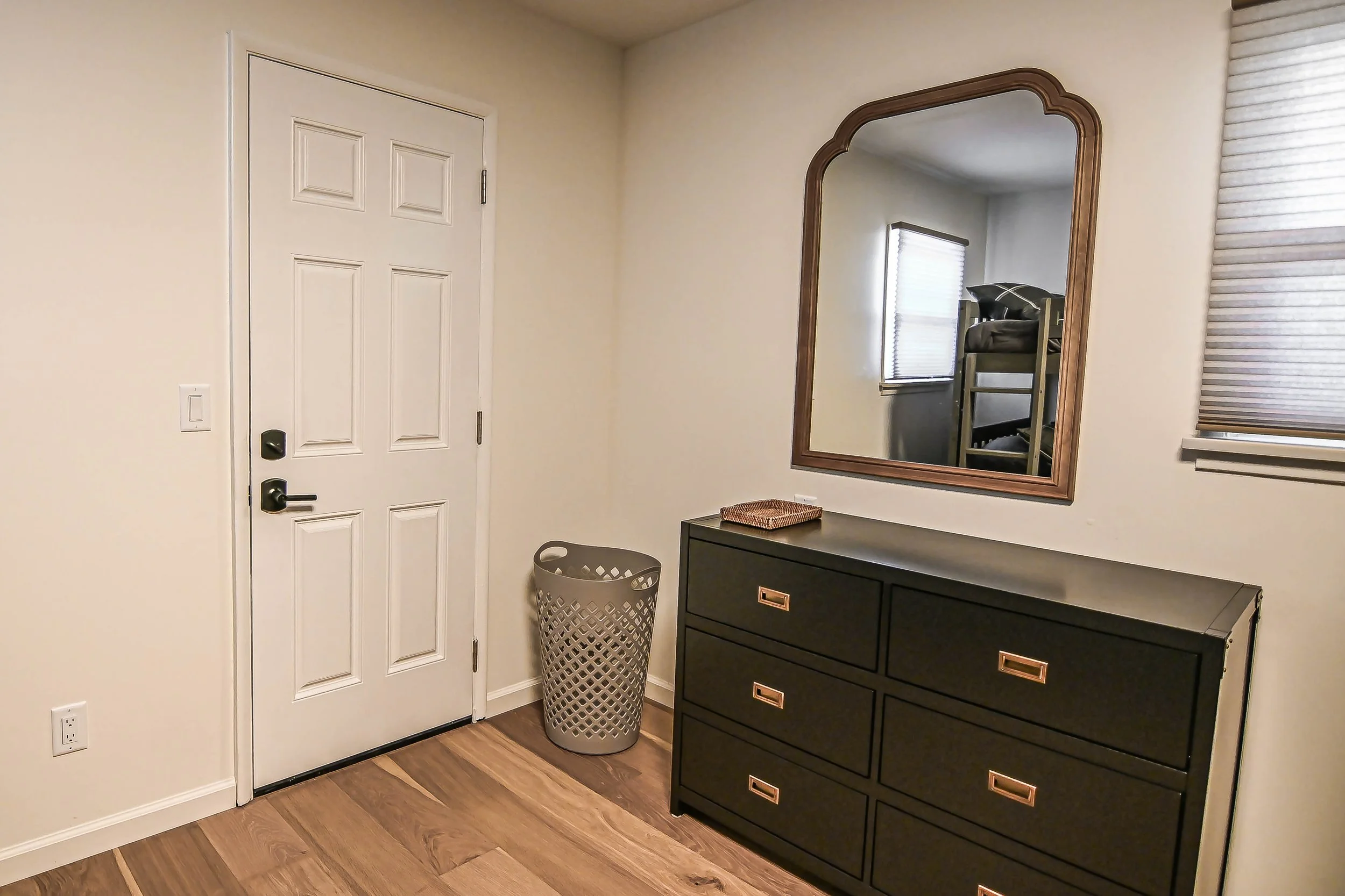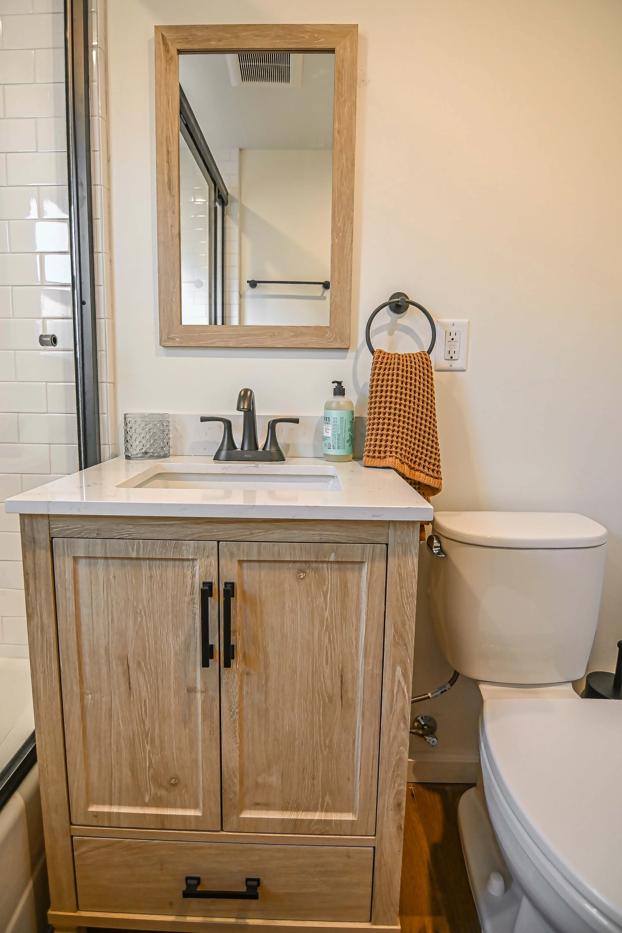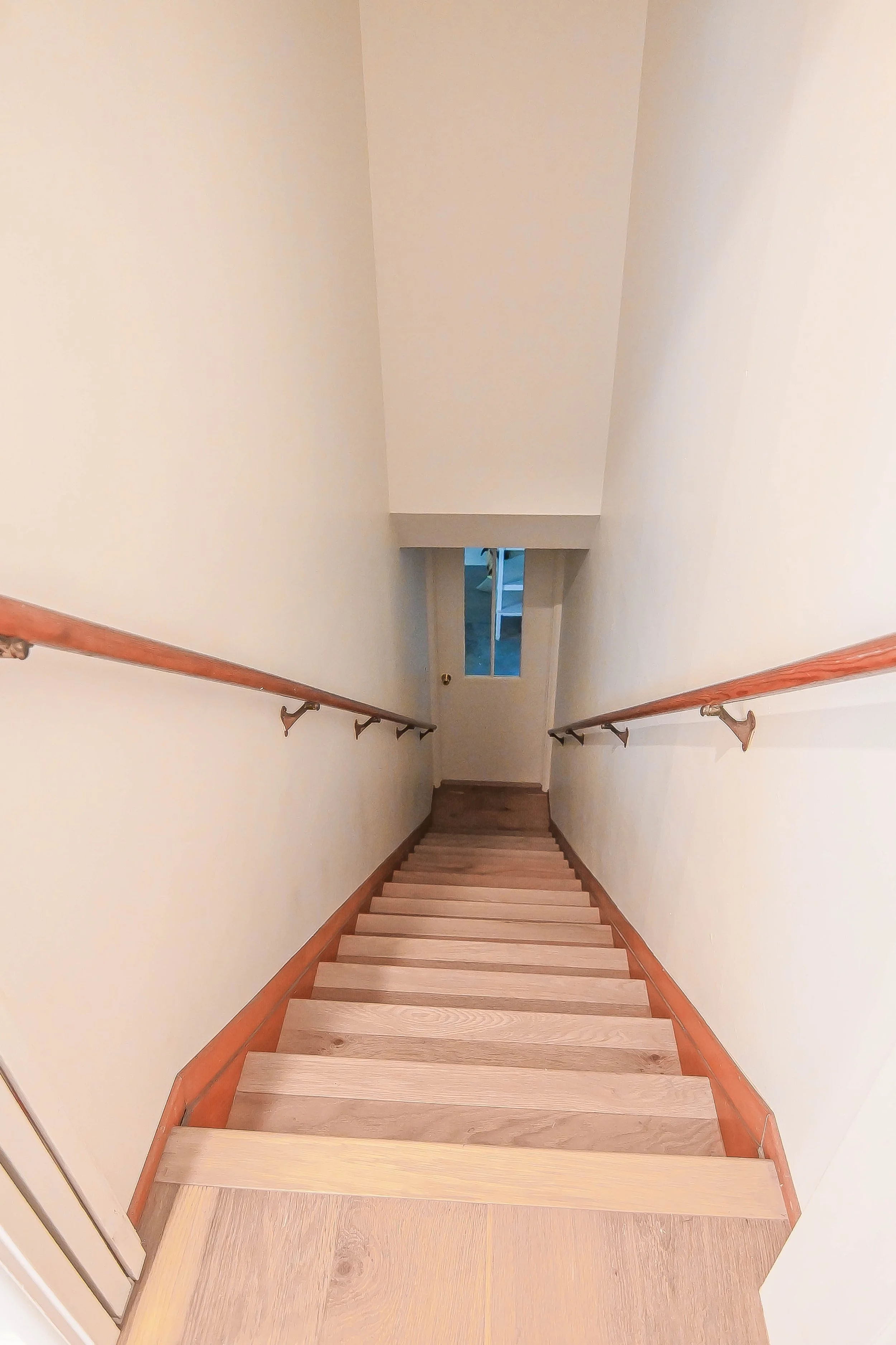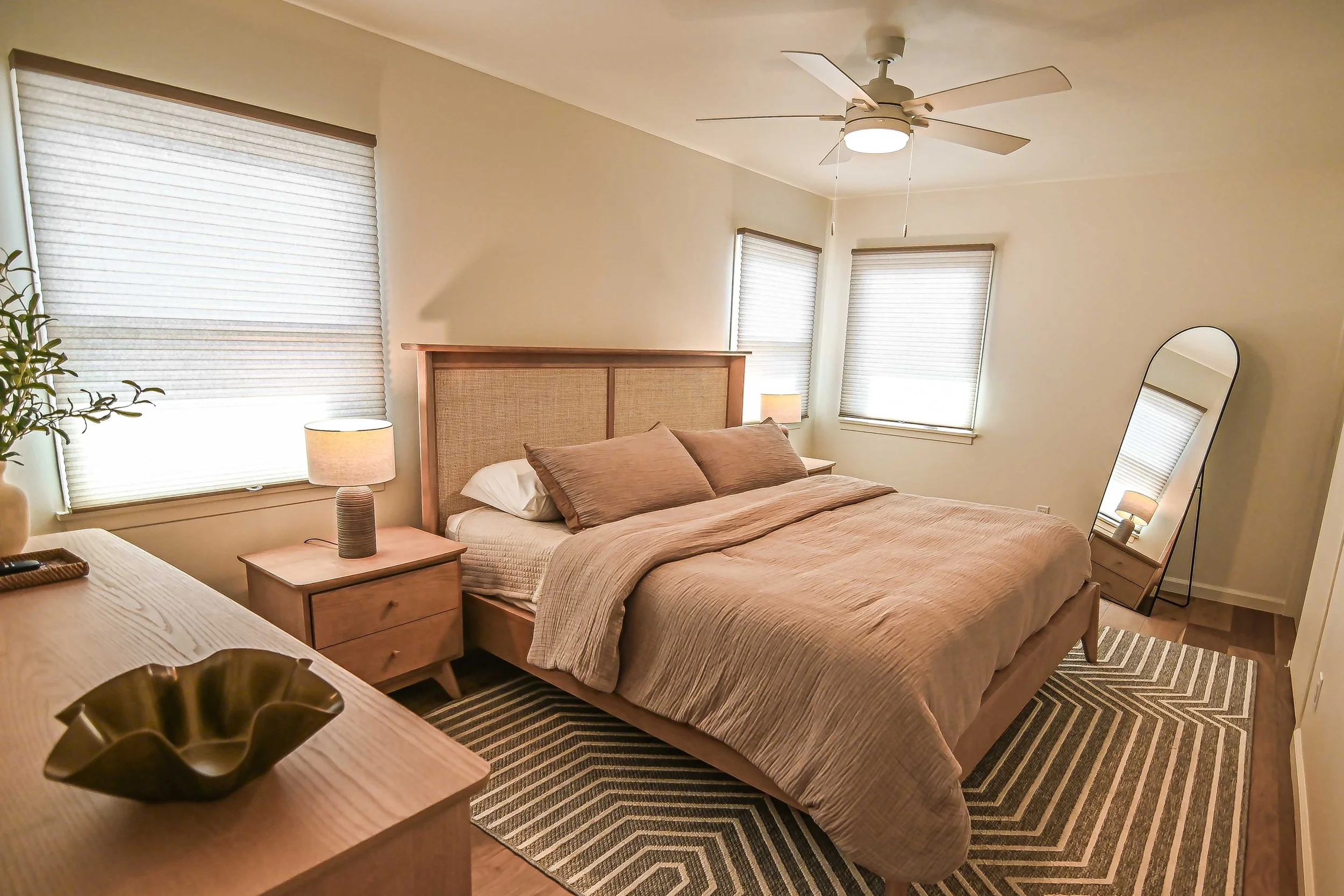 Two upstairs bedrooms with a shared bath and private staircase entrance