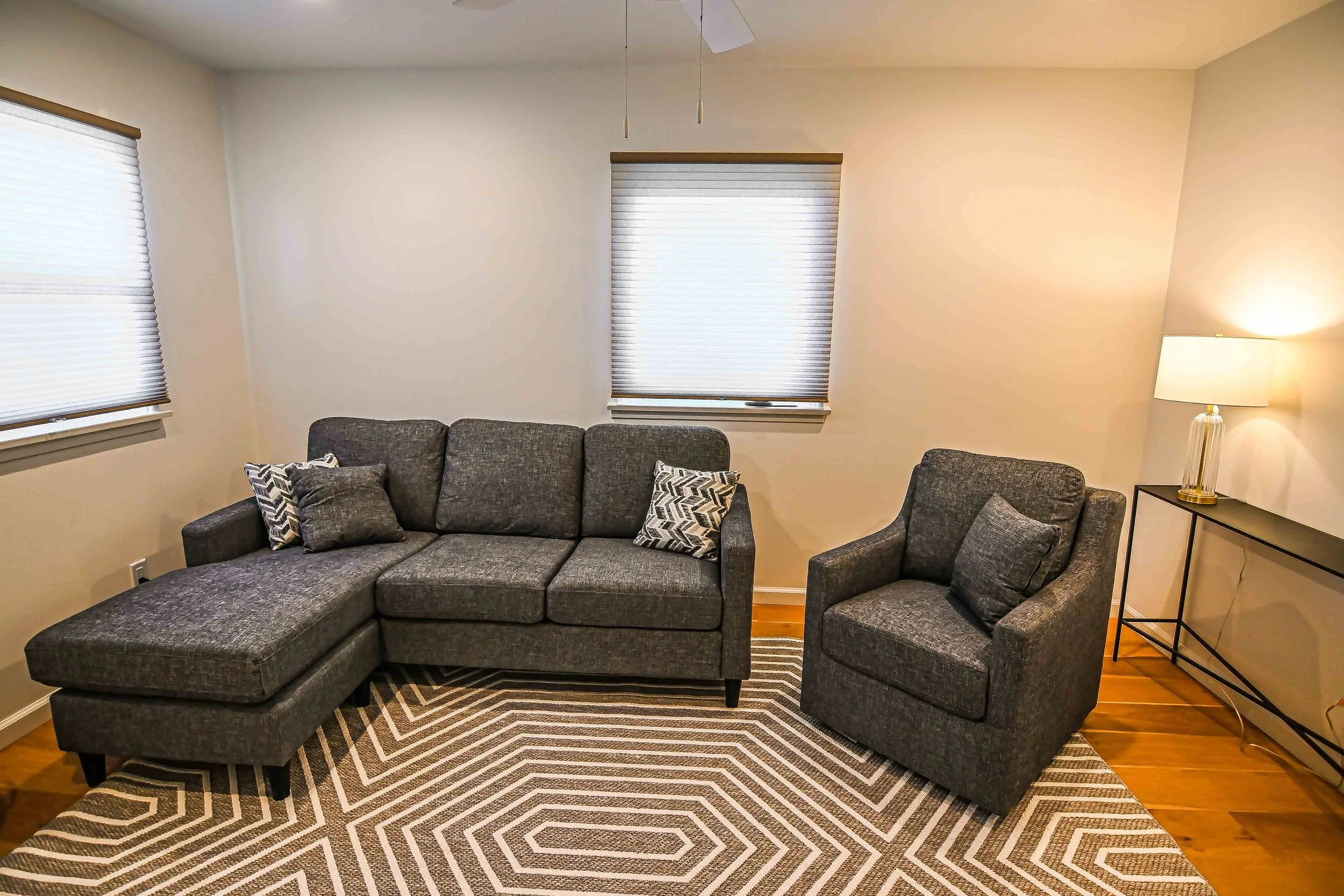 The home offers two unique living areas. Stairs lead up to the main entrance on the side patio. There is a separate entrance to the lower living areas and an internal stairwell, too. Each level offers a living room and two bedrooms (total of four sleeping rooms). The kitchen and dining room are upstairs. Indoor laundry is located downstairs in the garage area.