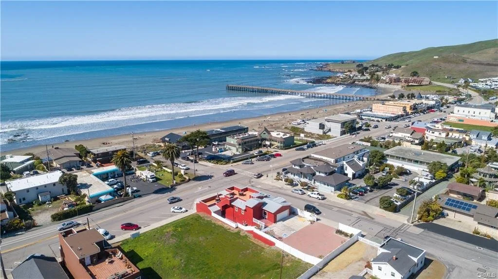The St. Joseph’s Oceanview Building is a mixed-used property in downtown Cayucos, just across the street from the E Street beach access area. Units include two rental residences (currently rented together) and two commercial spaces that share a few common areas. Inside, an open layout offers many configuration options, covering approximately 1600 sqft. Amenities include central heating and air conditioning, security alarm, ceiling fans, west-facing windows with partial ocean view, an ADA accessible bathroom, wired sound system, concrete floors, common area outdoor patio, and shared parking lot. Rent includes monthly landscaping service.